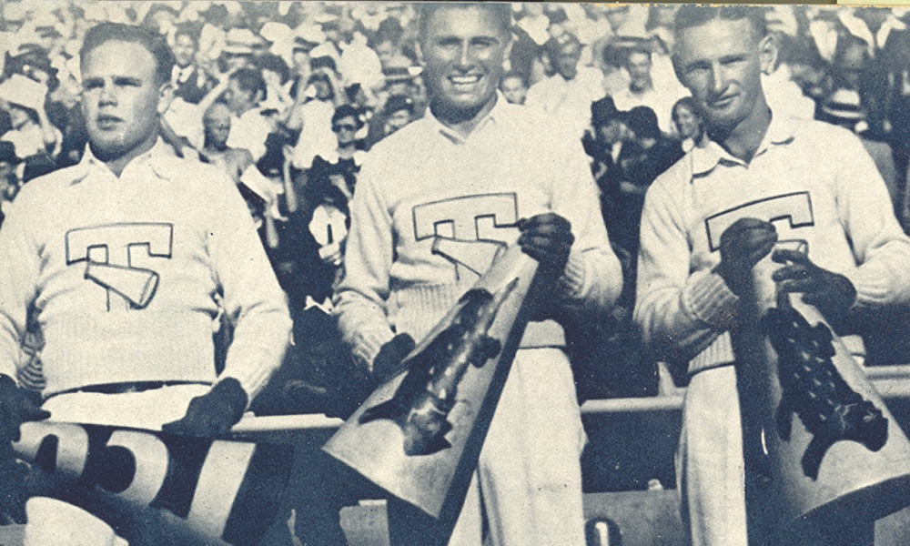 Cheerleader Chad Schrotel ’82 helped our gesture of unity catch on with the crowds in 1980. Appropriately, it’s like a peace sign with slightly curled fingers, symbolizing the horns of our tiny, mighty mascot, the horned frog.