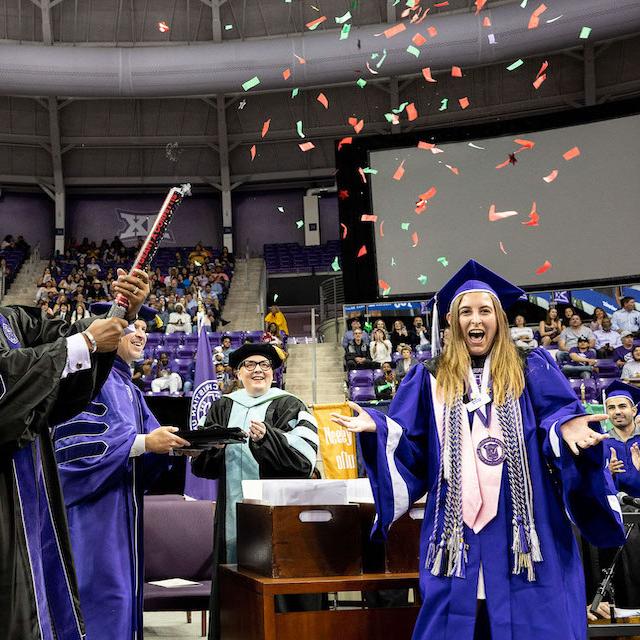 “You have just been awarded your diploma from Texas Christian University,” Pullin said. “Let’s take a moment to bask in the glow of this moment and acknowledge where you have been and what you have gained during your time at TCU.”